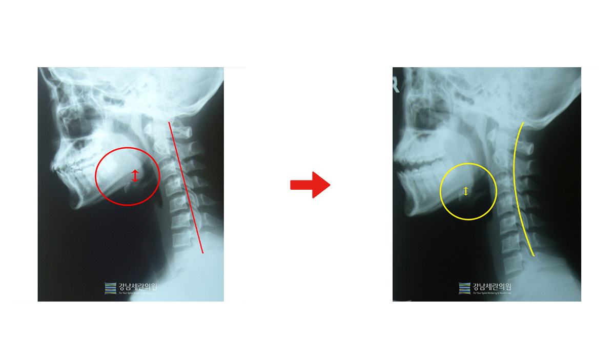 일자목 치료 전 ▶ 일자목 30회(3개월) 치료 후