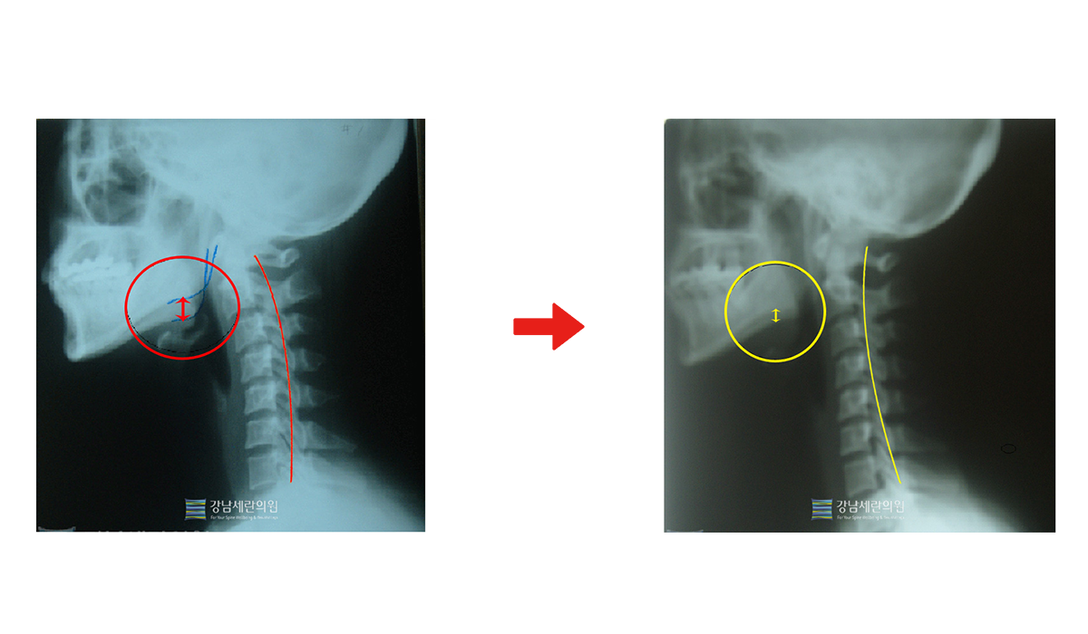 일자목 치료 전 ▶ 일자목 30회(3개월) 치료 후