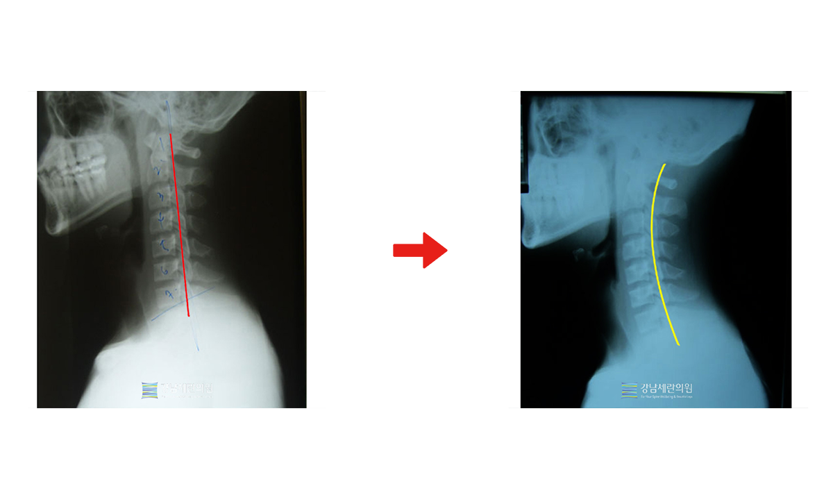 일자목 치료 전 ▶ 일자목 30회(3개월) 치료 후