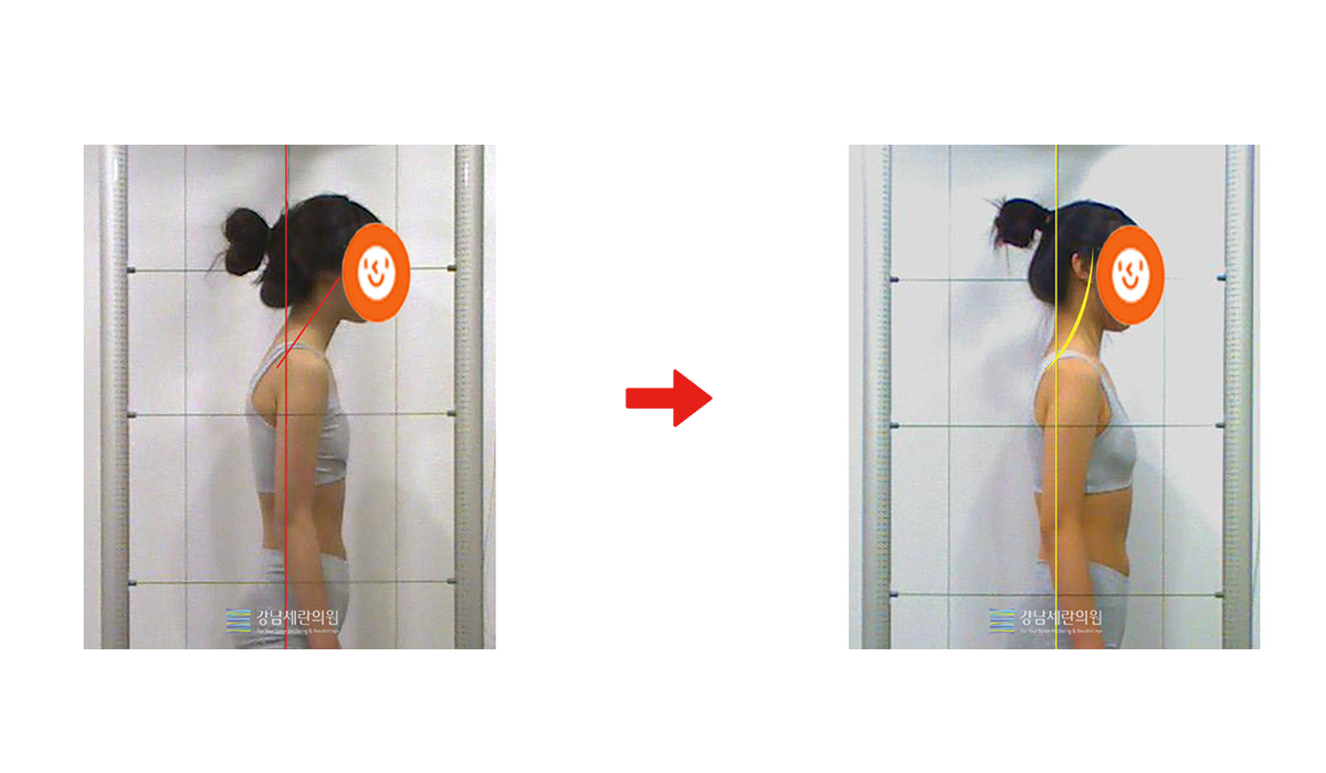 일자목 치료 전 ▶ 일자목 30회(3개월) 치료 후