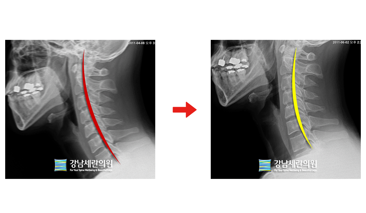 일자목 치료 전 ▶ 일자목 30회(3개월) 치료 후