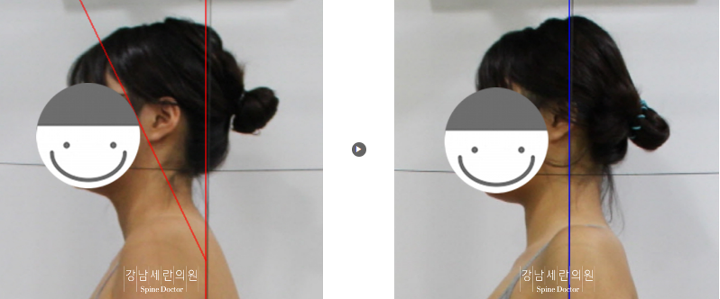 일자목 교정전 ▶ 일자목 30회(3개월) 치료 후